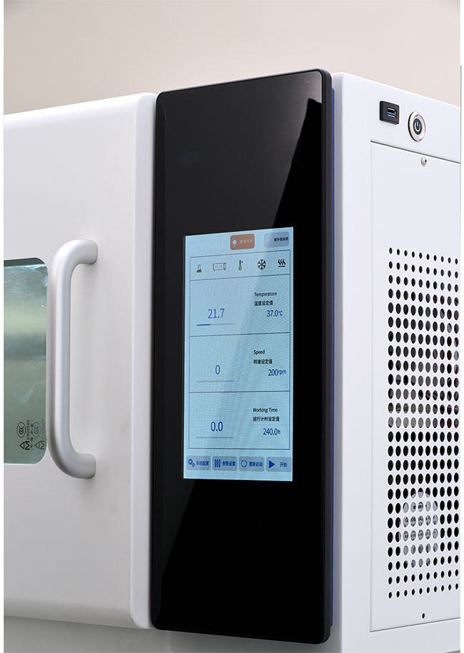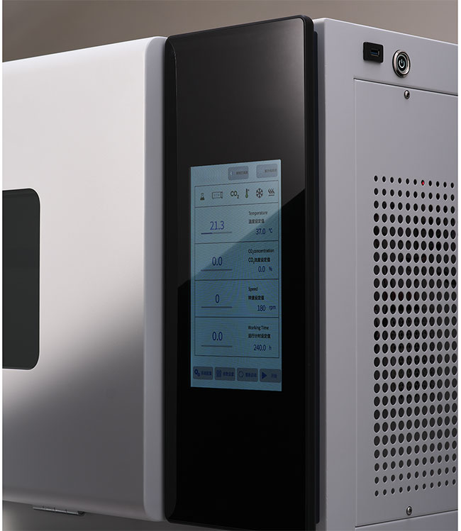 智能控制系统:叠加CO2震荡培养箱采用10寸彩色触摸屏显示参数数据,通过曲线显示使波动数据更直观。实验室人员可穿戴手套操作,并配备USB接口,支持导出数据。