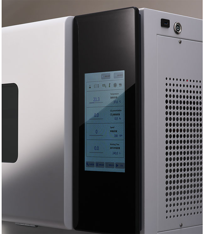 智能控制系统:叠加CO2震荡培养箱采用10寸彩色触摸屏显示参数数据,通过曲线显示使波动数据更直观。实验室人员可穿戴手套操作,并配备USB接口,支持导出数据。