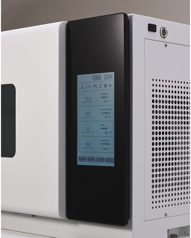 智能控制系统:叠加CO2震荡培养箱采用10寸彩色触摸屏显示参数数据,通过曲线显示使波动数据更直观。实验室人员可穿戴手套操作,并配备USB接口,支持导出数据。
