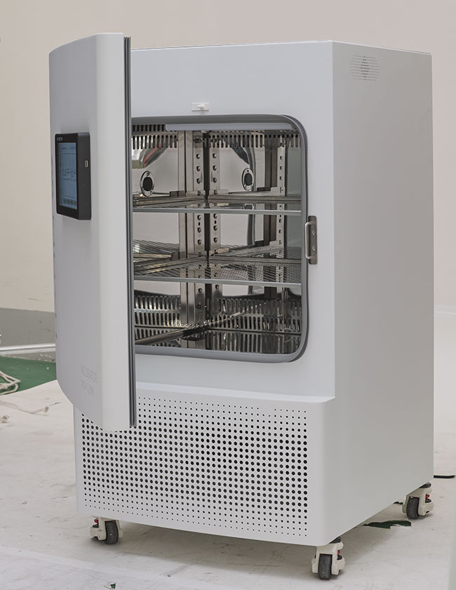 智能控制系统:生化培养箱采用10寸彩色触摸屏显示参数数据,通过曲线显示使波动数据更直观。实验室人员可穿戴手套操作,并配备USB接口,支持导出数据。