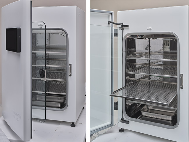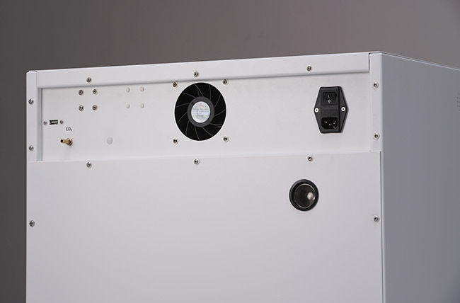 CO2 控 制 系 统:采用进口红外(IR)CO2 浓度传感器,不受温度、湿度变化的影响,控制稳定,使用寿命长;CO2浓度恢复快,开门 30 秒后关门,5 分钟内恢复到 5% 的 CO2 设定浓度,能实现箱内 CO2浓度快速稳定和均匀;可选配TC热导传感器